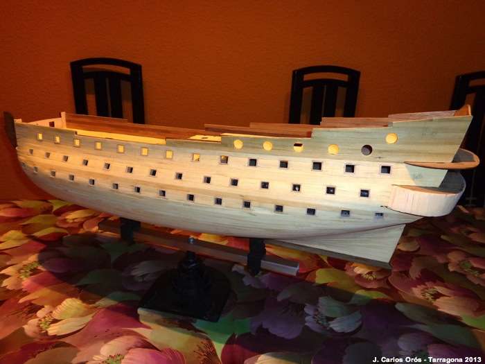 Hola compis Aquí seguimos a vueltas con el forrado del San Felipe y el tema de las troneras. El kit dispone de una plantilla que indica la posición del cañón, pero después de pasar la plantilla a un plástico para…