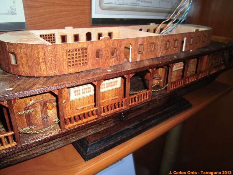 Hola amigos Un paso más. En esta fase se han colocado los pilarotes de la primera cubierta y el bateolas. El bateolas en tilo o ramín antes de ser tintado en nogal. Hasta aquí los avances. El siguiente paso hacer…